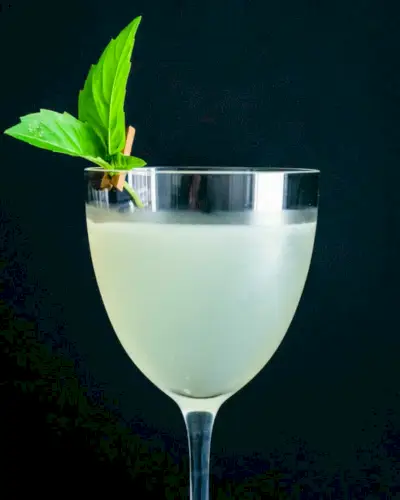 Ingrédients: Gin, jus de citron vert, basilic frais, sirop simple