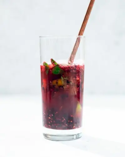 Besoin d'une boisson au bourbon rafraîchissante et fruitée ? Découvrez le smash de mûre et de bourbon ! Il est piquant grâce au jus de citron vert, légèrement sucré grâce aux baies et à un peu de sirop d'érable, et arrosé grâce au bourbon. Ajoutez une touche de eau gazeuse et cela complète la saveur, puis servez avec glace pilée ! C’est tellement savoureux et plus léger que tant de cocktails au bourbon.