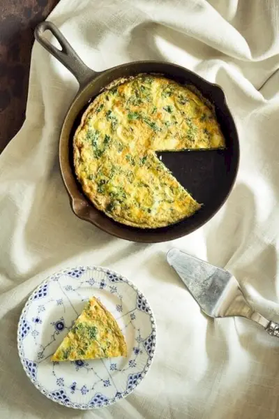 L’une de nos recettes de chou frisé les plus uniques est cette frittata végétarienne aux artichauts et au chou frisé ! Version italienne d'une omelette, une frittata est ultra polyvalente. Il peut être consommé au petit-déjeuner, au déjeuner ou au dîner et servi chaud, tiède ou même froid. Celui-ci contient du chou frisé haché, des artichauts piquants et du savoureux fromage Pecorino Romano. C'est incroyablement délicieux et satisfaisant : servir avec du pain croustillant et une salade.