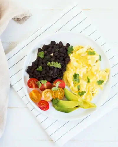 Dernière étape de nos recettes aux œufs pour le dîner : cette savoureuse quesadilla aux œufs brouillés ! Il ne s’agit en aucun cas d’une recette mexicaine authentique. C’est solidement à l’américaine, et la seule chose qui mérite son titre, c’est qu’il est rempli de oeufs brouillés . Mais Ouah , est-ce satisfaisant ! Des œufs brouillés, des haricots noirs et du cheddar fondant pris en sandwich entre des tortillas grillées et trempés dans du guacamole ? C’est basique dans tous les sens, et en même temps une révélation à chaque bouchée.