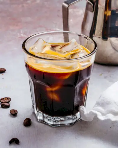 Qu'y a-t-il dans l'Americano glacé ? Un Americano glacé est une boisson à base d’eau chaude et d’espresso, servie sur de la glace.