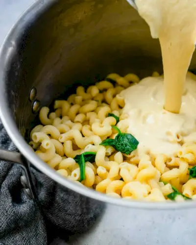 Dernière liste de nos meilleures sauces pour pâtes faites maison : vous avez toujours voulu une version saine d'une sauce au fromage pour pâtes blanches ? Découvrez la réponse : une sauce crémeuse au chou-fleur ! Cette sauce est comme une sauce Alfredo saine, mais contrairement à la version traditionnelle, vous vous sentirez ensuite légère et vibrante. C'est délicieusement crémeux, avec de l'ail et du parmesan.