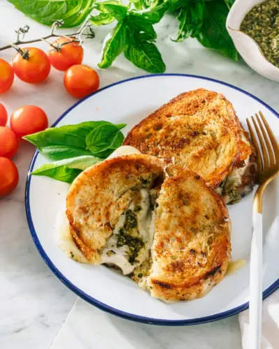 Voici l’une de nos façons préférées d’utiliser cette tartinade herbacée : dans du fromage grillé au pesto ! Il donne la meilleure saveur d'ail et d'herbes au fromage fondant gluant, ce qui en fait un irrésistible sandwich. C’est rapide à assembler et presque impossible à lâcher.