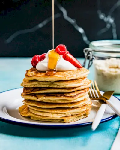 Voici une autre idée amusante de petit-déjeuner pour le dîner : des crêpes à la farine d'amande ! Elles sont incroyablement moelleuses et parfumées à la vanille, et si savoureuses que personne ne devinerait qu’il n’existe aucune farine tout usage standard. Remplissez-les de beurre de noix pour une touche plus savoureuse, semblable à celle d'un dîner.