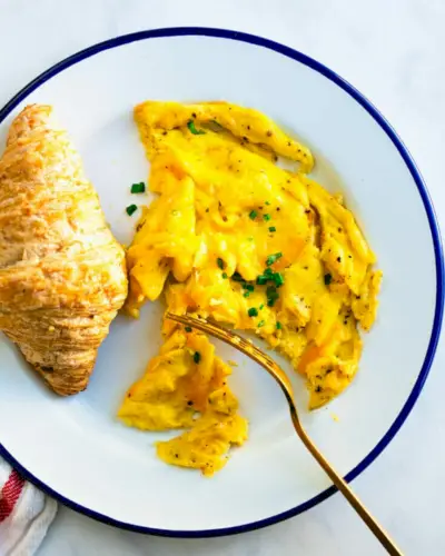 Quand on ne sait pas quoi préparer pour le dîner, on se tourne souvent vers les œufs brouillés ! Voici nos secrets pour préparer les meilleurs œufs brouillés ! C'est notre technique éprouvée qui consiste à gratter les œufs pour en faire des plis doux et veloutés de bonté. Chaque fois que nous les servons, nous entendons un chœur de wow. Servir avec des toasts ou ces pommes de terre sautées.