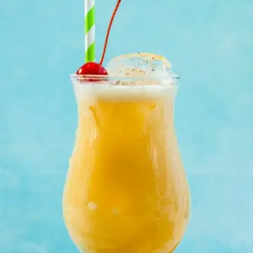 - Mélanger l'ananas et la glace jusqu'à obtenir une consistance épaisse. Ajouter le reste des ingrédients et mélanger jusqu'à consistance lisse. Servir garni d'une cerise cocktail et de parapluies à boissons.