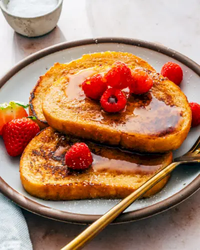 Envie de pain perdu mais vous le voulez végétalien ? Il s'avère que vous pouvez facilement sauter les œufs dans cette recette de petit-déjeuner classique sans avoir besoin d'ingrédients sophistiqués. C’est vrai : pas de substituts d’œufs : juste des ingrédients simples que vous avez déjà sous la main ! La texture et la saveur sont parfaites : gluantes, crémeuses et légèrement croustillantes à l'extérieur, épicées de cannelle et d'un soupçon de muscade.