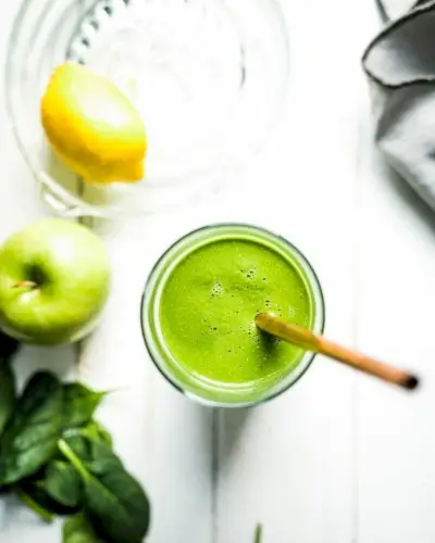 Un autre smoothie préféré pour le petit-déjeuner ? Cette tarte sucrée smoothie aux pommes vertes éclatantes , chargé de légumes-feuilles et légèrement sucré avec du sirop d'érable et de la pomme verte. Le piquant est équilibré avec le sucré, et il a une texture lâche mais crémeuse qui est facile à boire et une couleur verte vive et éclatante. Son goût est incroyable et il regorge de nutriments.