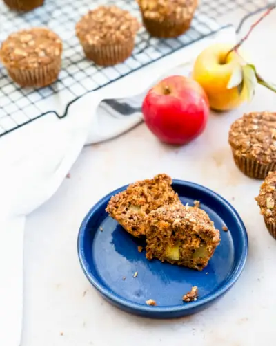 Ces muffins végétaliens aux pommes sont parfaitement moelleux et moelleux. La meilleure partie est une garniture croustillante pour muffins streusel aux pommes : elle donne à chaque bouchée un croquant parfaitement sucré, sans être trop sucré. Badigeonnez de beurre de cacahuète ou de beurre d'amande et c'est une fantastique recette de petit-déjeuner à base de plantes.