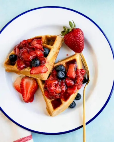 Vous pensez que les gaufres à base de plantes sont une sorte de compromis ? Détrompez-vous. Ces gaufres végétaliennes sont légères, moelleuses et correspondent exactement à ce que vous recherchez dans une gaufre. Les ingrédients sont simples : farine, sucre, huile, lait d’avoine ou d’amande et épices : des choses que vous aurez probablement déjà sous la main dans votre garde-manger. Vous devez les essayer : que vous mangiez à base de plantes ou non. Servez-les avec sauce aux fraises pour les amener au sommet.