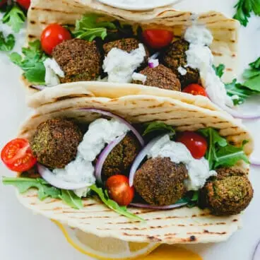 Fabrication falafel et vous ne savez pas quelle sauce utiliser ? Ce beignet de pois chiches frits méditerranéen est une matière dont les rêves sont faits. Vous pouvez le servir seul avec une sauce ou le farcir dans un pain plat en guise de sandwich aux falafels . Ou servez-le comme salade de falafels , sur une laitue croquante arrosée de sauce.