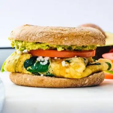 Ce sandwich sain pour le petit-déjeuner est une façon simple de commencer la journée avec des légumes et des protéines ! La garniture à la feta aux épinards est copieuse et satisfaisante.