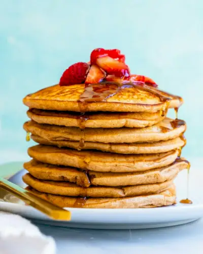 Rien de mieux que des crêpes pour un petit-déjeuner spécial week-end ! L’une de nos variantes préférées est nos incroyables crêpes à l’avoine, préparées dans un mélangeur avec 100 % d’avoine. C'est copieux et copieux, mais il a un goût moelleux et incroyable : presque comme un gâteau à la vanille ! (C'est vrai.) Mais nous avons des crêpes pour chaque saison. Voir ci-dessous!