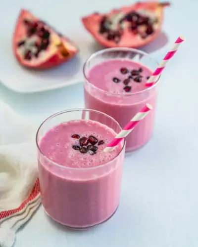 Cette délicieuse boisson rose regorge de saveurs fruitées et l'une de nos préféré façons d'utiliser graines de grenade . Il associe les graines aux tons bijou avec de l'ananas et de la banane surgelés pour obtenir une purée crémeuse pleine de nutriments et de vitamines.