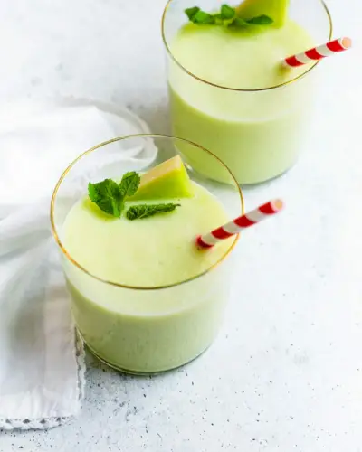 Le melon miel est un ingrédient rare dans les smoothies, mais cette recette fera de vous un fan instantané. Il a une belle saveur délicatement sucrée et une texture mousseuse. C’est hydratant et sain : et la saveur du melon brille vraiment avec le miel et la vanille !