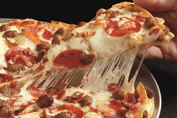 Les jeux vidéo de Palaca jouent avec leur santé et décrivent cela comme une super-joue de 12 ', dans le style de pizza en huit tranches, pleine de manchego et de cheddar, de fromage à pepperoni et de saucisses italiennes, puis avec plus de pepperoni et de pepperoni et de pepperoni, plus de baconas, de marinara et de ches de madarella et de barmeen. Le CSPI rapporte que ses artères et ses tailles ont l'air d'un poivron à pizza carnivore en couches sur deux fromages à base de fromage en taco ou du beurre à moitié artificiel d'environ les trois quarts de McDonald Pound avec du fromage.