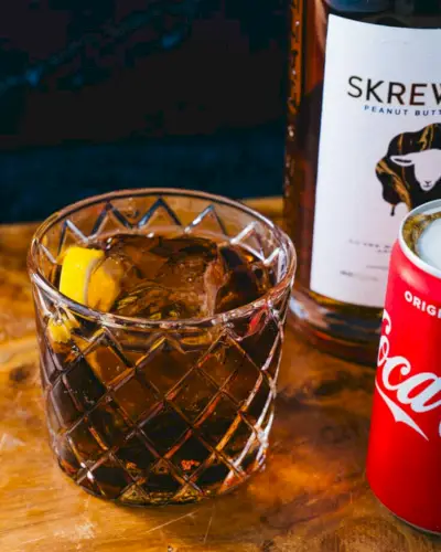 Ingrédients: Whisky au beurre de cacahuète Skrewball, cola, quartier de citron ou de lime