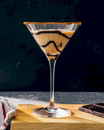 Préparez une boisson Skrewball en remplaçant la vodka par du whisky au beurre de cacahuète dans le Chocolate Martini ! Cette boisson est riche et crémeuse, essentiellement un dessert dans un verre. Il met en vedette la crème irlandaise et la crème de cacao pour un maximum de saveur, comme la version liquide de votre barre de chocolat préférée. Échangez la même quantité de Skrewball contre de la vodka.