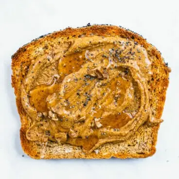 De toute évidence, comment faire des toasts au beurre d’amande est plus que élémentaire : badigeonner du beurre d’amande sur des toasts, n’est-ce pas ? Voilà : toasts au beurre d'amande ! Cependant, nous l’avons inclus comme recette car il est parfois facile d’oublier les idées de petit-déjeuner et de collation les plus simples ! C'est un idée de petit-déjeuner végétalien qui regorge de protéines. Accompagné de pain de cervelle entière, c’est tout ce dont j’ai envie le matin : beaucoup de protéines végétales et pas trop sucré. En gros, c’est ma collation parfaite !