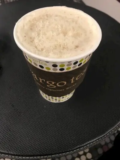 Je suis tellement triste qu'Argo Tea ait retiré cette boisson de son menu, car c'était mon Teapuccino préféré. Bien que le thé noir n'avait pas une saveur très forte, la boisson avait un mélange parfait de saveurs de menthe et de chocolat. Si vous pouvez toujours obtenir cette boisson, assurez-vous de la mélanger. Le chocolat a tendance à se déposer au fond, surtout dans le latte glacé.