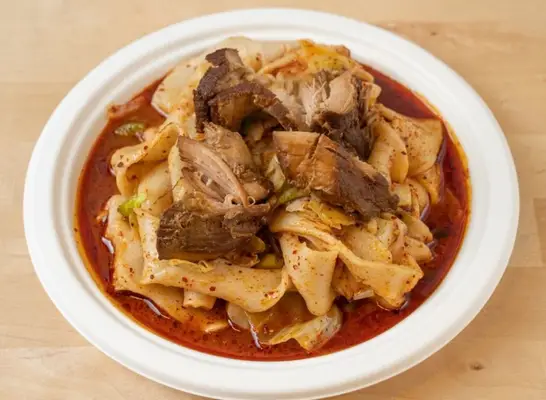 Je suis un fan de pâtes jetées à la main, donc j'ai vraiment apprécié les pâtes d'agneau. Les nouilles sont super épaisses et larges et ont une bonne bouchée pour eux. Vous pouvez vraiment essayer le goût des épices, mais il n'est pas trop dominant; un de mes amis pourrait le gérer, bien qu'il ait une saison la plus basse, a écrit un critique qui visite la Californie. 'Et délicieux.