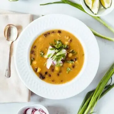C'est dans les garnitures que cette soupe brille vraiment : les radis, la coriandre et le citron vert apportent une saveur piquante que vous ne pourrez plus arrêter de manger ! Ou essayez de tourbillonner Crème mexicaine maison ou en ajoutant Lanières de tortillas pour un craquement.