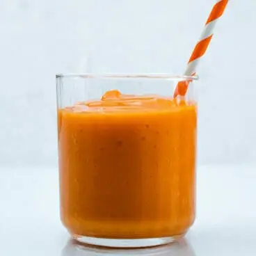 Ce smoothie aux carottes est soyeux et plein de saveurs fruitées ! Ce légume sain se marie parfaitement avec la pomme, l’orange et la mangue.