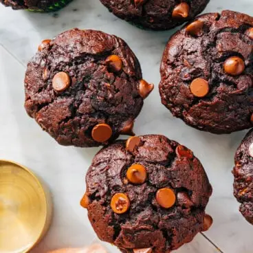 Ces muffins aux courgettes et au chocolat sont super moelleux, riches et chocolatés : la façon idéale de préparer ce légume vert ! Ces muffins se démarquent comme un grand favori de notre répertoire de courgettes, avec notre pain aux courgettes au chocolat préféré des fans. Tout le monde devient fou de cette friandise !