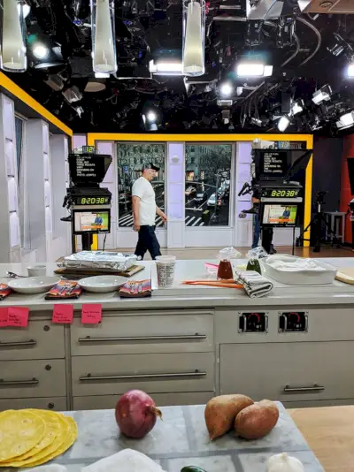 Le jour de notre segment, les stylistes culinaires ont fait cuire, styliser et mettre en place tous les plats sur le plateau. Après qu'Alex et moi ayons fini de nous coiffer et de nous maquiller, nous avons acheté des micros et des écouteurs pour pouvoir entendre les hôtes goûter la nourriture sur une scène différente. Après le compte à rebours, nous avons cuisiné les enchiladas, en parcourant les différentes stations qui avaient été préparées pour nous. Hoda Kotb était l'hôte le plus aimable, et il était incroyable de travailler avec tous les animateurs du TODAY Show !