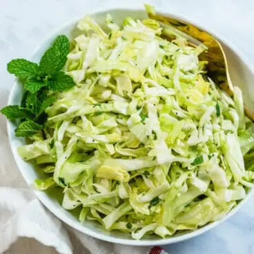 Vous voulez changer votre salade de chou routine? Essayez ceci Salade de chou facile plutôt! Pour de nombreuses salades de chou ou de chou, vous couperez et préparerez sans cesse la longue liste d’ingrédients. Ce n’est pas le cas avec celui-ci ! Cette salade sans effort ne nécessite que 6 ingrédients, et les seuls ingrédients frais sont le chou vert et la menthe. Il est frais et piquant, avec une saveur de menthe citronnée qui incite les mangeurs à revenir pour en savoir plus. Nous l’avons servi dans le cadre d’une gamme de salades d’été, et tout le monde n’arrêtait pas de demander : qu’est-ce qu’il y a dedans ?