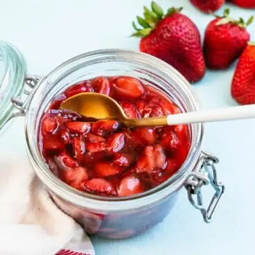 La seule autre chose à noter à propos de la sauce aux fraises est la consistance. Nous aimons les nôtres plutôt gros (comme vous pouvez le voir). Si vous souhaitez que ce soit plus fluide, voici quelques choses que vous pouvez faire :