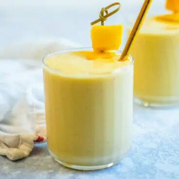 Ce smoothie mangue-banane est crémeux et tropical, avec une couleur jaune soleil ! C’est parfait pour les petits déjeuners et les collations faciles. Pour les végétaliens, voir les variantes dans la section ci-dessus.