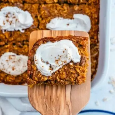 Ce gruau cuit à la citrouille est le petit-déjeuner d’automne idéal : épicé et plein d’avoine saine ! Préparez une poêle et mangez-en toute la semaine.