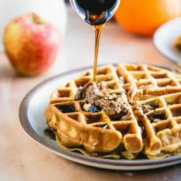 C'est l'automne et ça veut dire : signale le recettes de citrouille ! Notre objectif est de transformer à peu près tout ce qui est imaginable en une version aromatisée à la citrouille. Bien sûr, cela s'étend à houmous , pâtes , café , crêpes , soupe , flocons d'avoine… et gaufres ! Ces gaufres à la citrouille constituent le petit-déjeuner d’automne idéal, avec des épices agréables et de la purée de citrouille. Ils sont juste assez sucrés et garnis d’un peu de sirop d’érable pur… disons qu’ils sont passés comme un charme par ici.