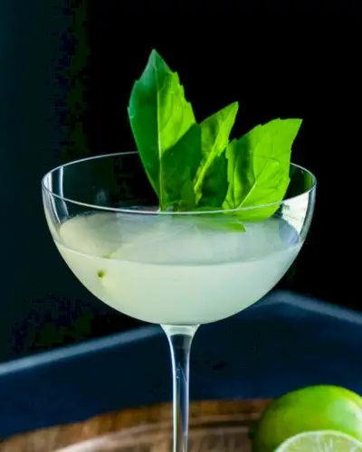 Le basilic est parfait pour les cocktails : il insuffle une finale fraîche à chaque gorgée ! Cette vrille de basilic contient du jus de citron vert, du gin et du basilic écrasé, ce qui lui donne une essence poivrée.