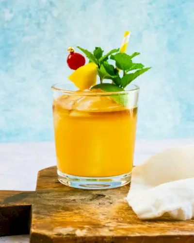 - Pour la garniture : Menthe fraîche, cerise cocktail, tranche d'ananas, quartier de citron vert