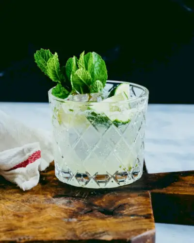 Ingrédients: Menthe fraîche, citron vert, sirop d'orgeat, eau gazeuse ou eau tonique