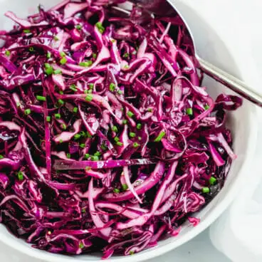 La salade de chou fait partie de ces choses que nous pourrions manger à chaque repas ( vraiment ). Voici notre nouvelle version préférée : Salade de chou rouge ! Avec la salade de chou standard, vous devez généralement acheter deux variétés de chou : rouge et vert. Souvent, les moitiés de chou restantes traînent dans notre réfrigérateur sans rien faire. Avec cette salade de chou rouge, les seuls légumes dont vous avez besoin sont un chou rouge et un oignon ! La vinaigrette pour salade de chou a la combinaison parfaite de salé, piquant, sucré et crémeux et élève les brins de chou croquants vers de nouveaux sommets. Tout ce dont vous avez besoin, c'est de quelques ingrédients, et le tout se prépare rapidement. Voici comment procéder !