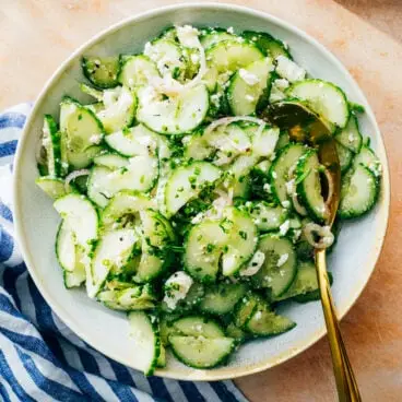 Il n’y a rien de mieux que le côté piquant et salé de cette salade de concombre et feta ! C’est parfait pour les déjeuners, les pique-niques, les barbecues d’été et plus encore.
