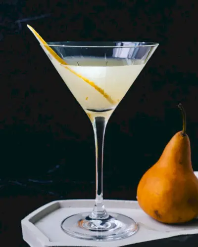 Ce cocktail de vodka unique fonctionne pour Noël lorsque les poires sont de saison ! Le Pear Martini est idéal pour les réceptions hivernales et, pour être honnête : il nous a surpris par sa saveur délicate et sucrée. La poire se décline en deux vagues : une poire fraîche écrasée apporte de l'éclat et la vodka à la poire insuffle un fort arôme fruité. Accompagné de jus de citron frais et sirop simple , c'est vraiment bluffant !