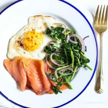 Cette recette de saumon fumé et d'œufs est pescatarienne, sans gluten et sans produits laitiers.