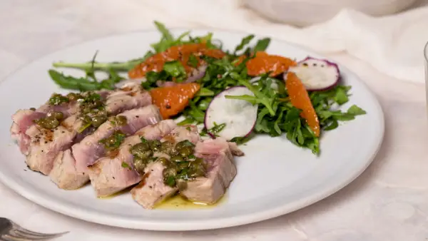 La sauce au citron et aux câpres peut être préparée à l’avance et conservée dans un récipient hermétique jusqu’à trois jours. Cependant, il est préférable de servir les steaks de thon fraîchement sortis du gril ou du gril.